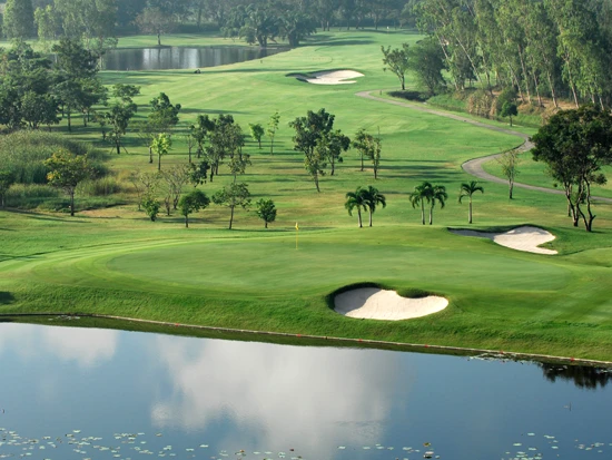 バンコク市内から約30分、スワンナプーム国際空港の近くに位置するムアンゲーオゴルフコースは、アクセスの良さが魅力の18ホールのゴルフコースです。1992年にオープンしたゴルフ場ですが、2003年にシュミットカーリーによって大規模な改装を経て、さらに2023年にも一部ホールが改修されました。全体的にフェアウェイが広めでフラットなためティーショットは打ちやすいかもしれませんが、ウォーターハザードや砲台グリーンが多く配置されており難易度が高いことで知られています。 ムアンゲーオゴルフコースは初心者にはやや難易度が高いものの、挑戦しがいのあるコースです。フェアウェイが広くフラットですが、ほとんどのコースにウォーターハザードが設置されており、深いバンカーや砲台グリーンがゴルファーを苦しめます。全体的に正確なショットが要求されるコース設計となっており、ベテランゴルファーにも人気です。 ムアンゲーオゴルフコースには、パッティンググリーンの他にアプローチ練習場やバンカー練習場も完備ですが、ドライビングレンジはありません。クラブハウスは新しいわけではないものの、こぎれいで落ち着いた雰囲気なのでリラックスできるでしょう。 併設されたレストランでは、タイ料理の他、日本食や韓国料理なども提供しています。