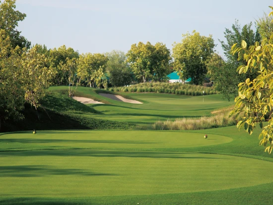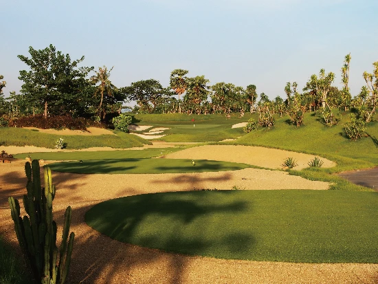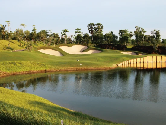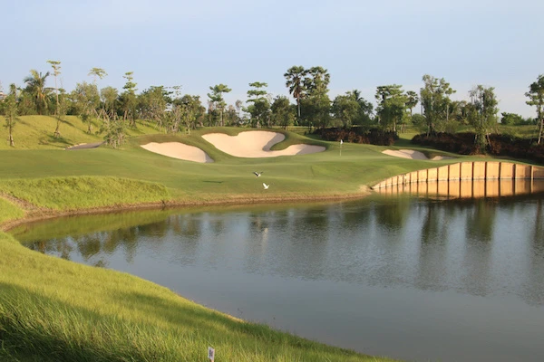 バンコクから西へ約1時間、ナコンパトムに位置するニカンティゴルフクラブは、2014年にオープンしたバンコクの中でも新しい部類に入る高級ゴルフコースの一つです。全長6,789ヤード、パー72のこのコースは、タイで最も有名なゴルフコース設計家の一人、ピラポン・ナマトラ氏にデザインされました。通常のコースが9ホール×2なのに対して、ここは6ホール×3の構成になっており、スタートホールが1番、7番、13番の3つあるのが特徴的です。